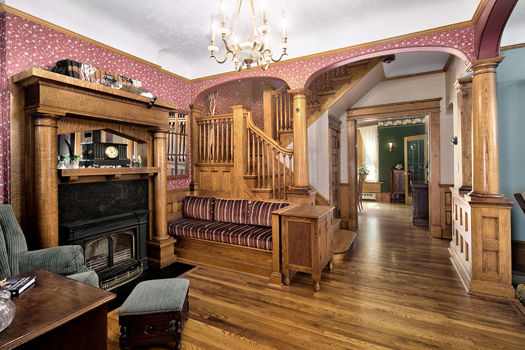 Step through the grand entrance, where a stately fireplace and rich original woodwork make an unforgettable first impression. Inside, you’ll find five spacious bedrooms plus an office and two full bathrooms — ideal for a growing family, hosting guests, or creating dedicated hobby and work-from-home spaces. Gleaming hardwood floors, Belgian bow glass windows imported from Europe, and intricate period millwork add warmth and character throughout.