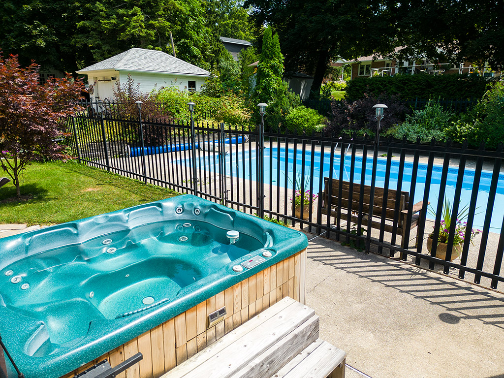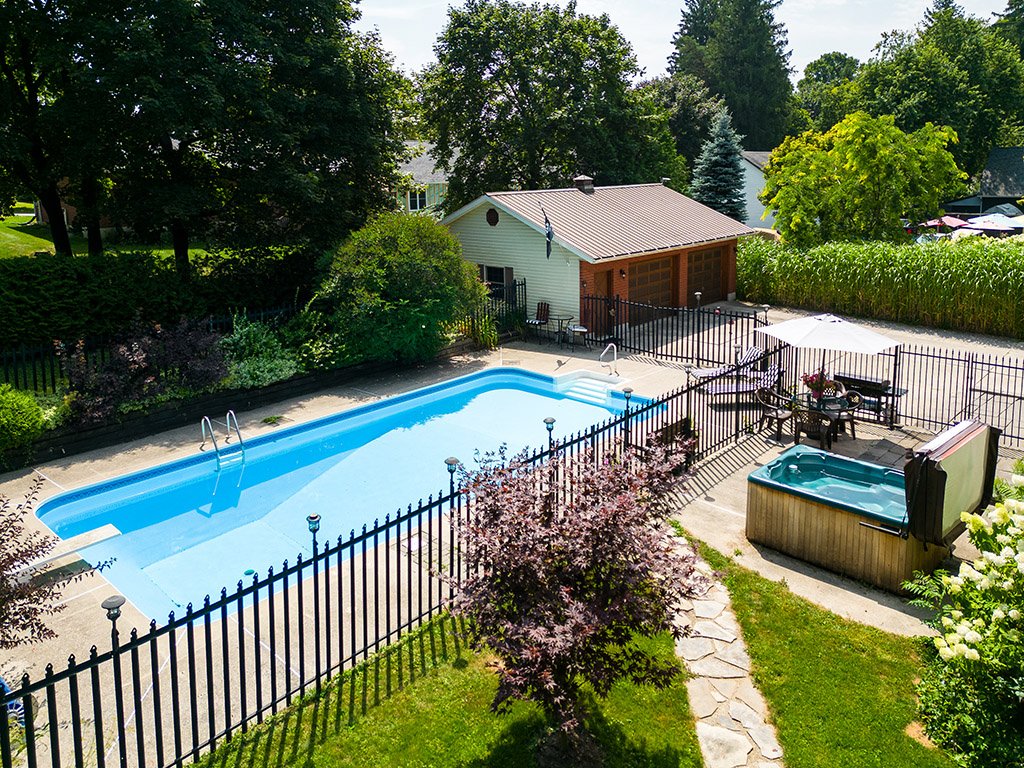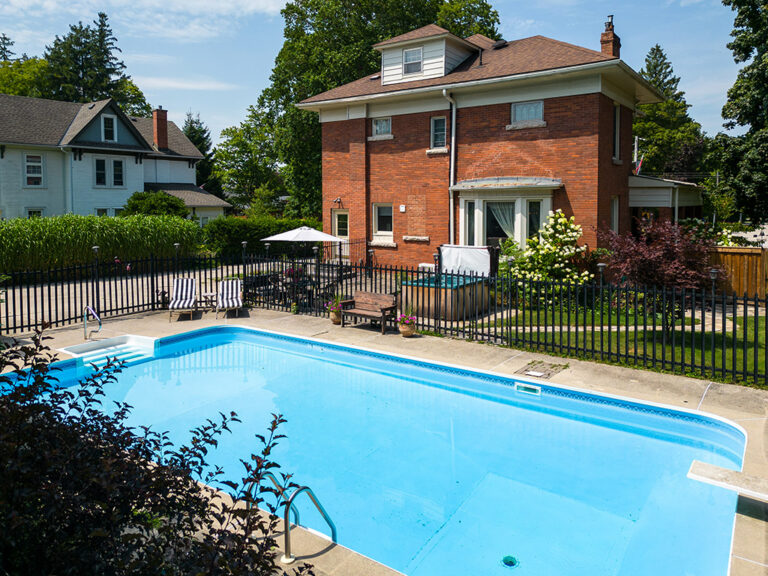 Outside, your private backyard retreat awaits. Spend summers lounging by the saltwater in-ground pool, unwind in the hot tub, or entertain under the shade of mature trees. The 24′ x 32′ detached garage provides room for vehicles, a workshop, or even a future studio.