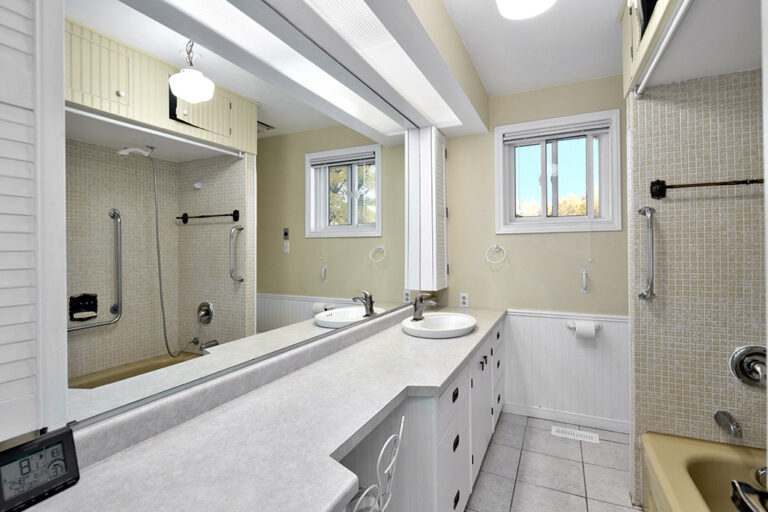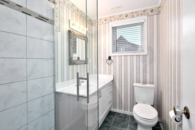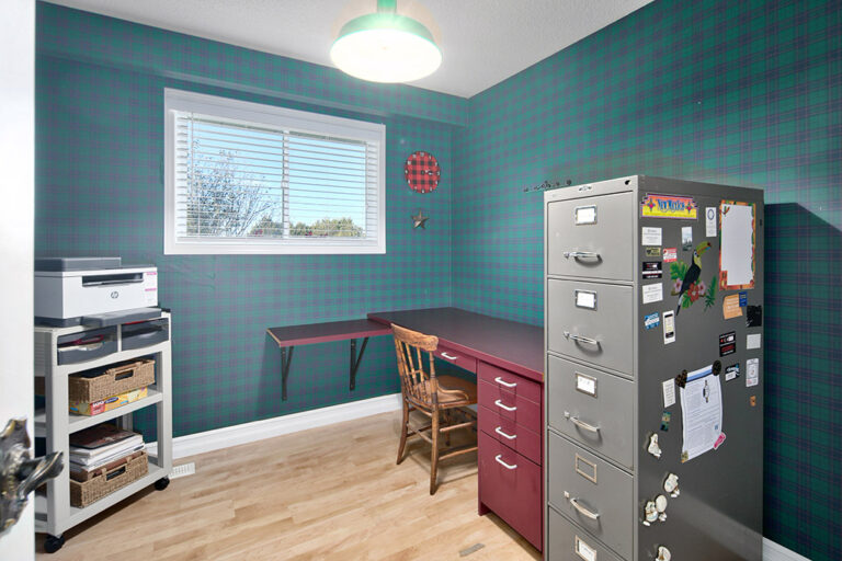 On the top floor, you’ll find three excellent-sized bedrooms and a modern 3-piece bath with a glass shower. Each room enjoys generous natural light and views of the surrounding greenery.