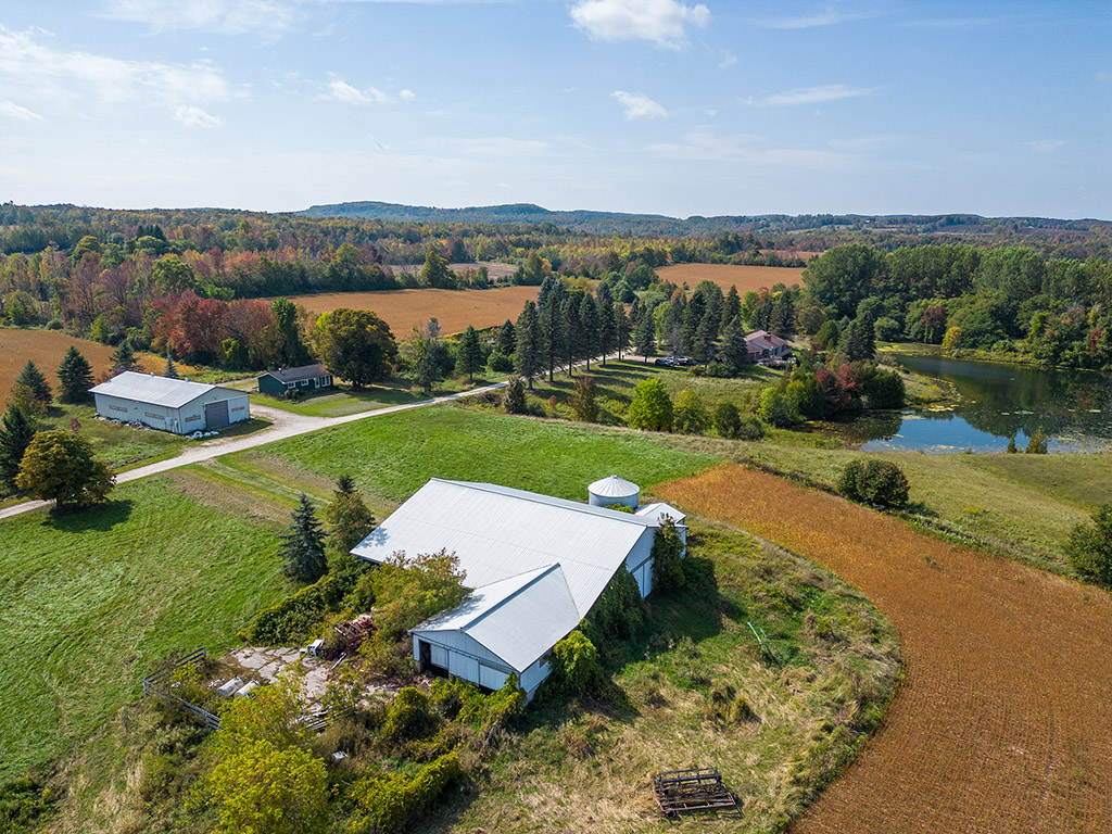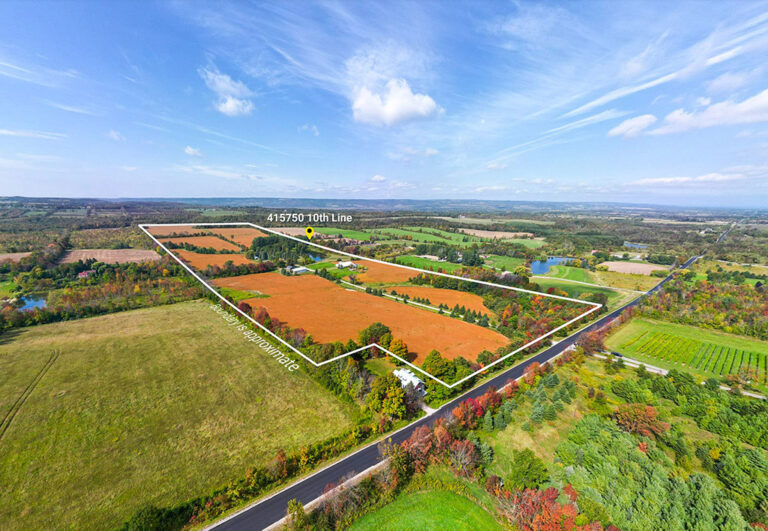 Farmland in The Blue Mountains is a rare offering, and this 99-acre property is brimming with opportunity. Just 15 minutes from downtown Thornbury, this picturesque farm captures the essence of country living with rolling fields, mature trees, and endless views.