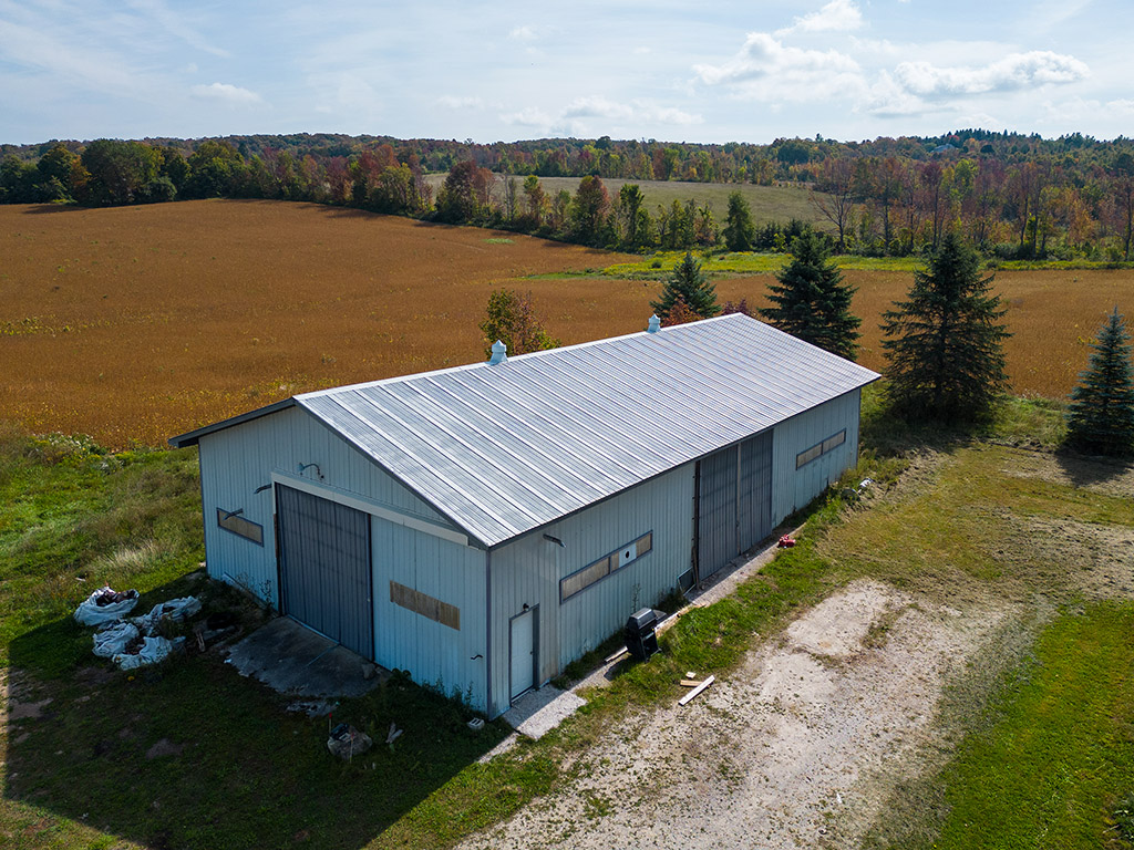 3,000 sq ft workshop (40 x 75), insulated with electricity and dual 13 x 13 doors.